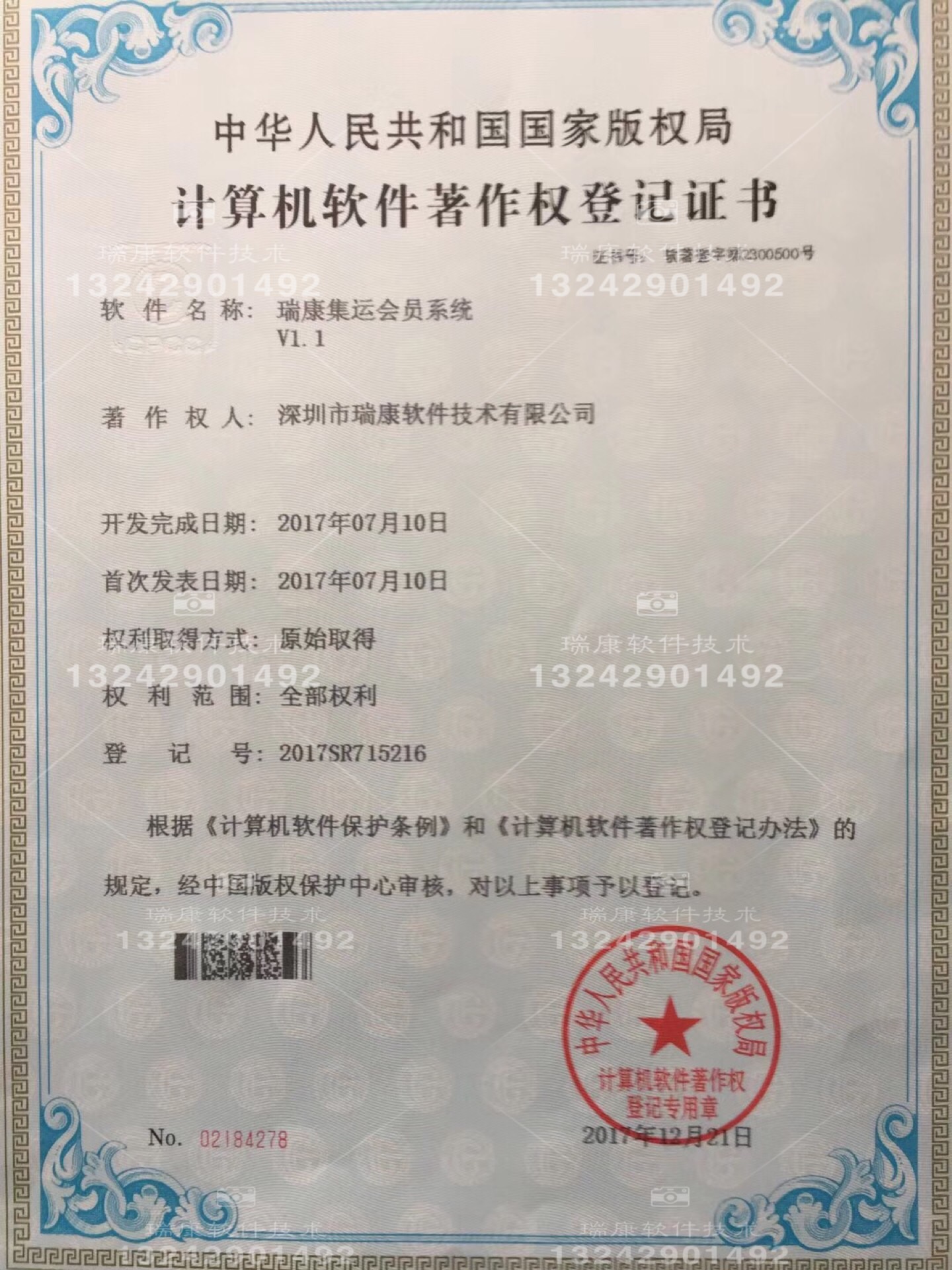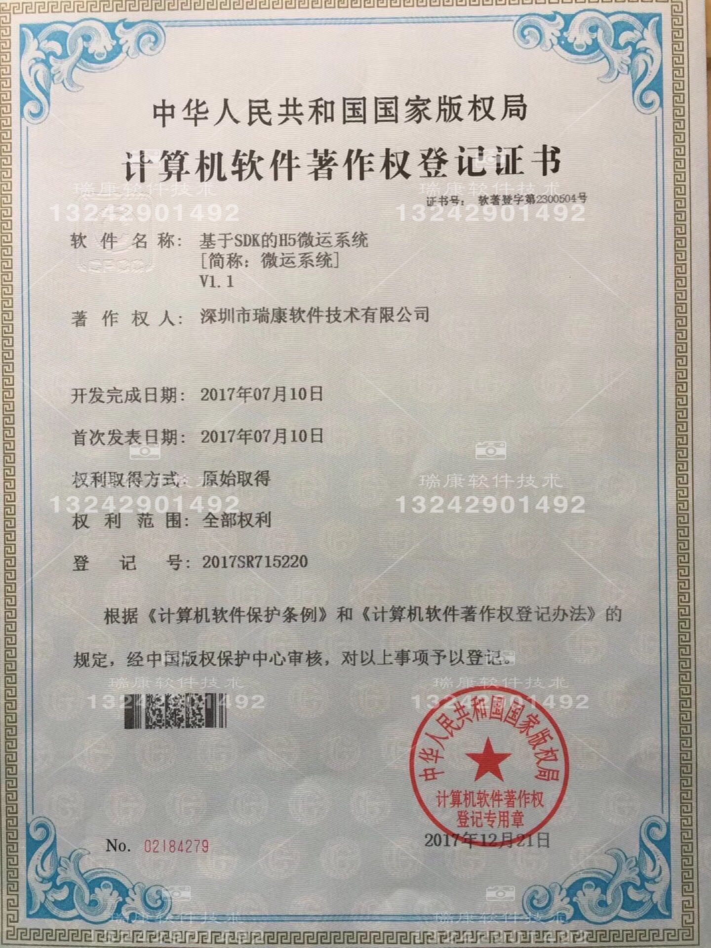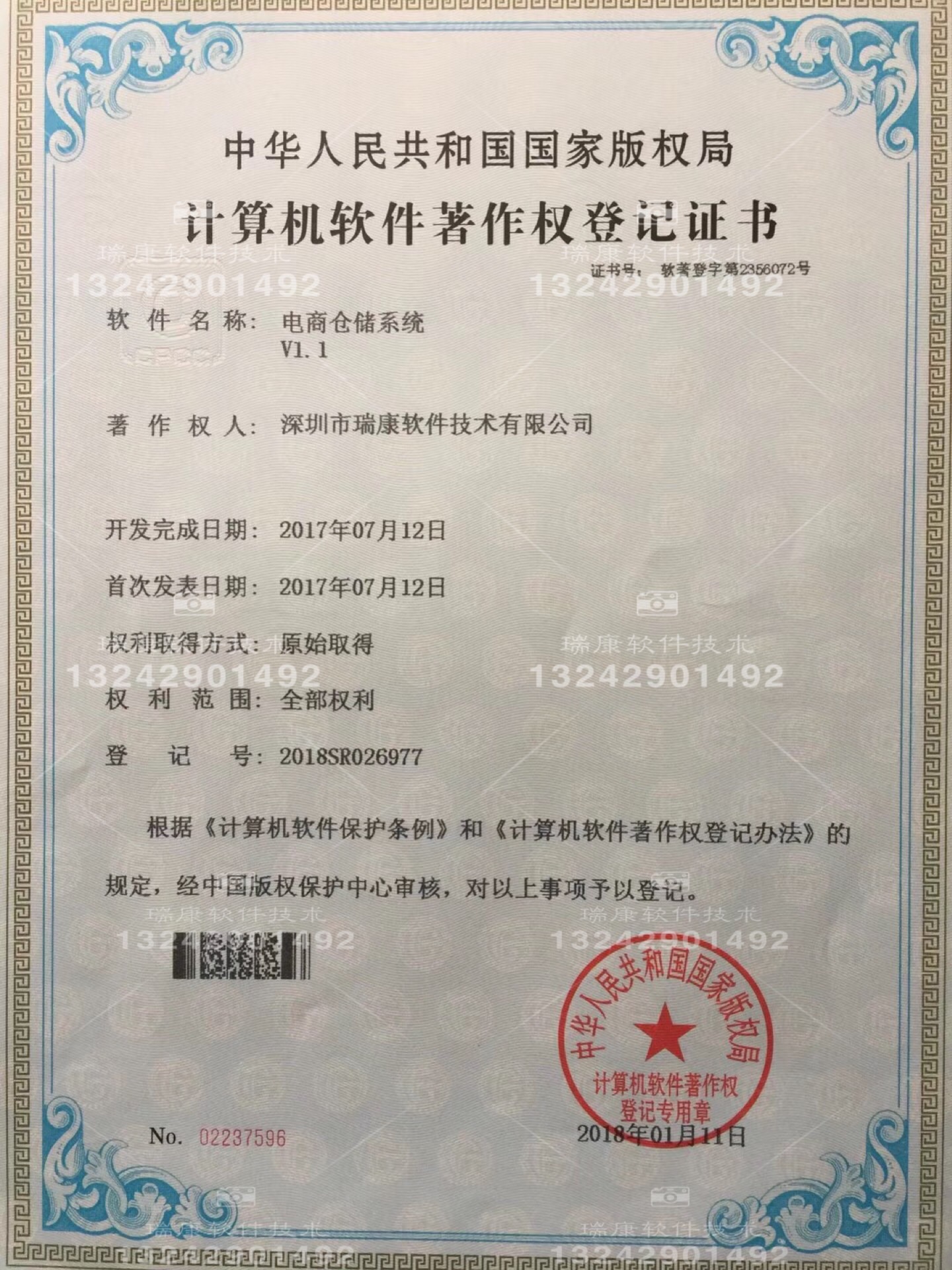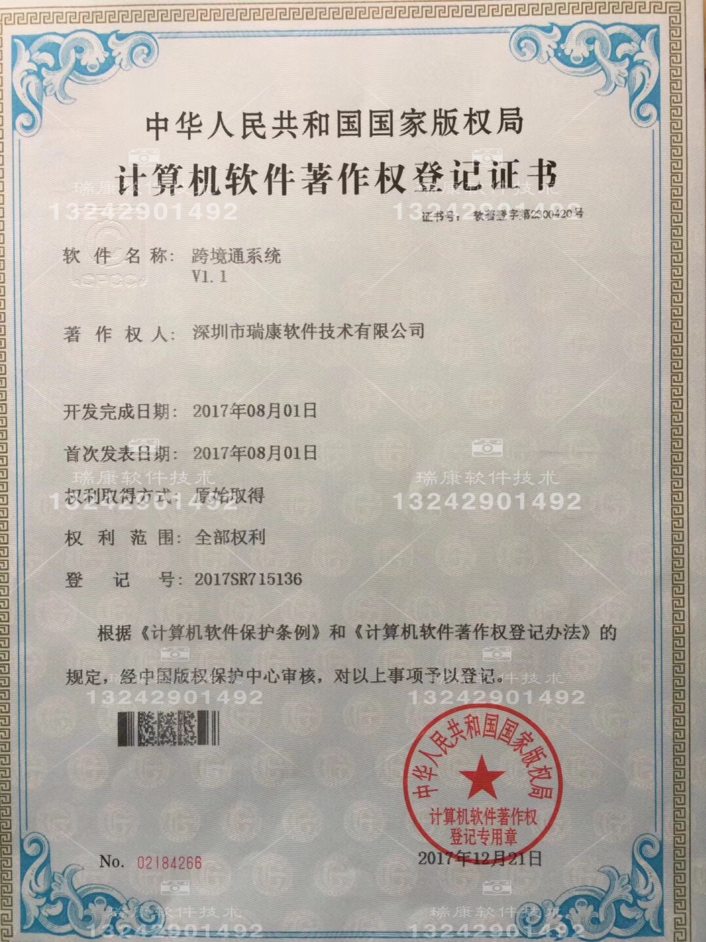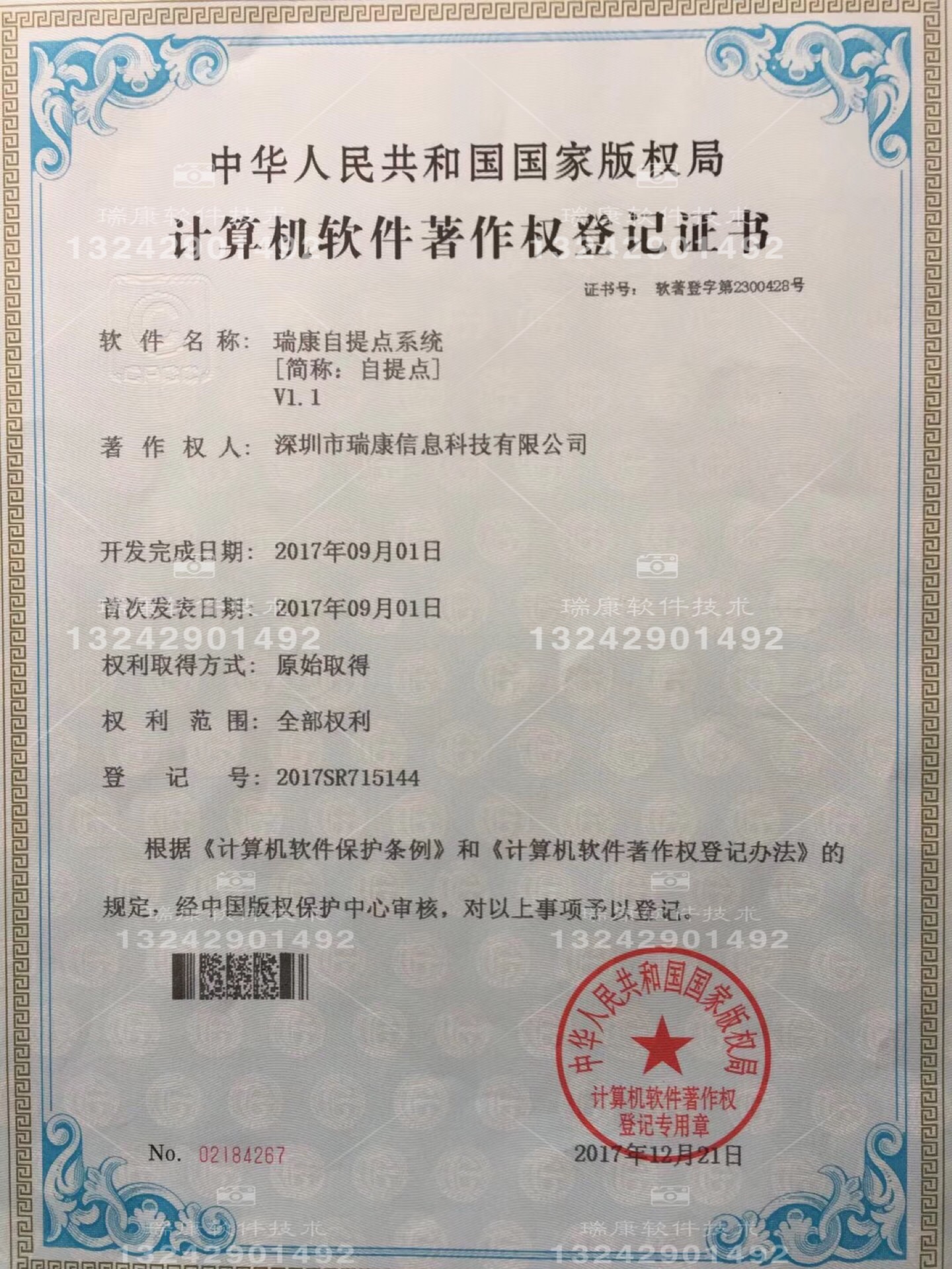 根據(jù)《計(jì)算機(jī)軟件保護(hù)條例》和《計(jì)算機(jī)軟件著作權(quán)登記辦法》的規(guī)定和中華人民共和國國家版權(quán)局的考證,日前,“瑞康科技”再次榮獲計(jì)算機(jī)軟件著作權(quán)登記證書。