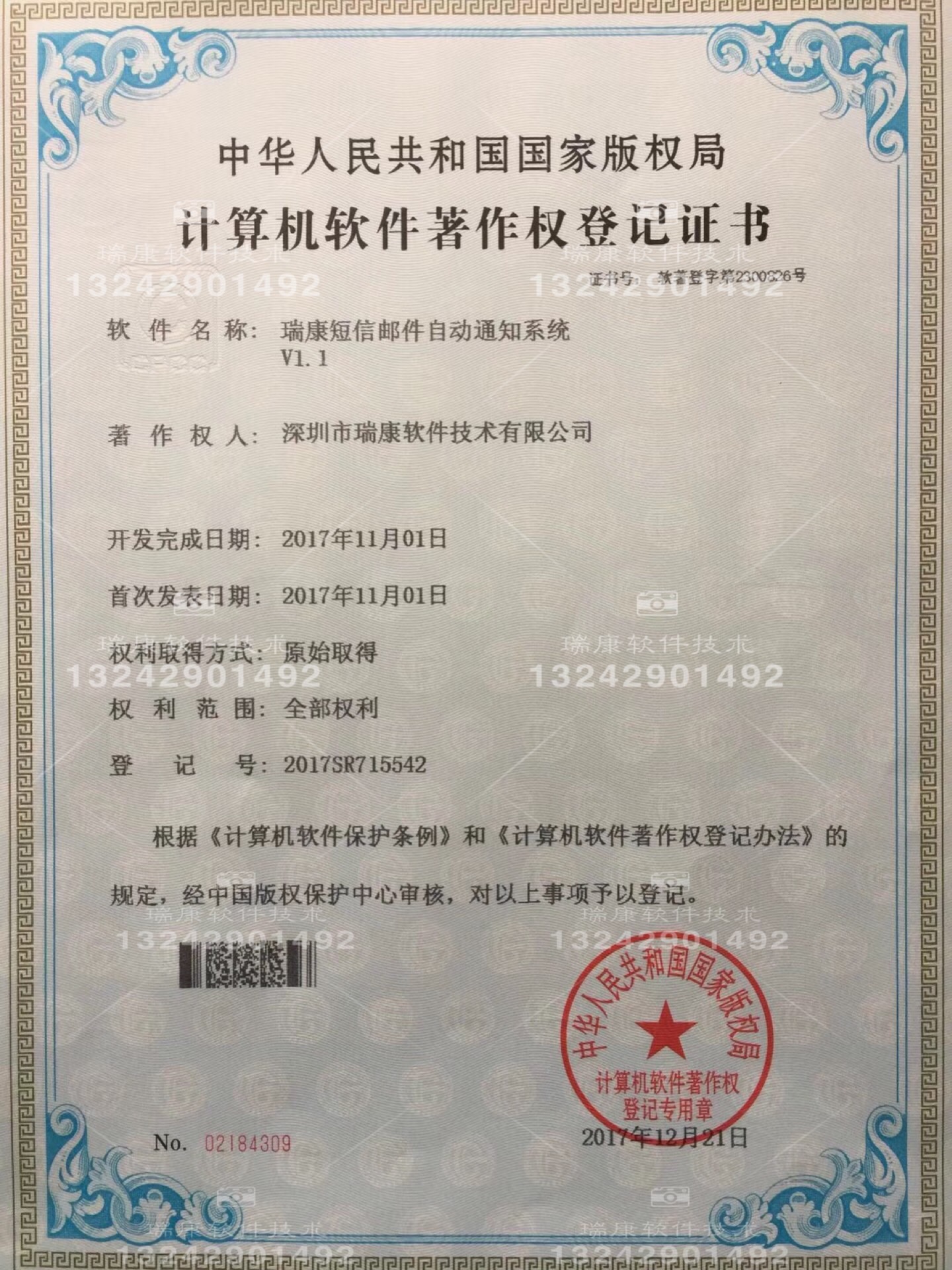 從頒證之日起,其版權(quán)將得到“中國版權(quán)保護(hù)中心”的有效保護(hù)。