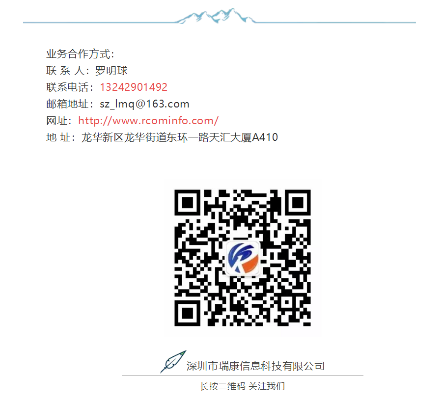 瑞康秉持一次合作終身朋友的理念,強大的客服及研發團隊為您服務!